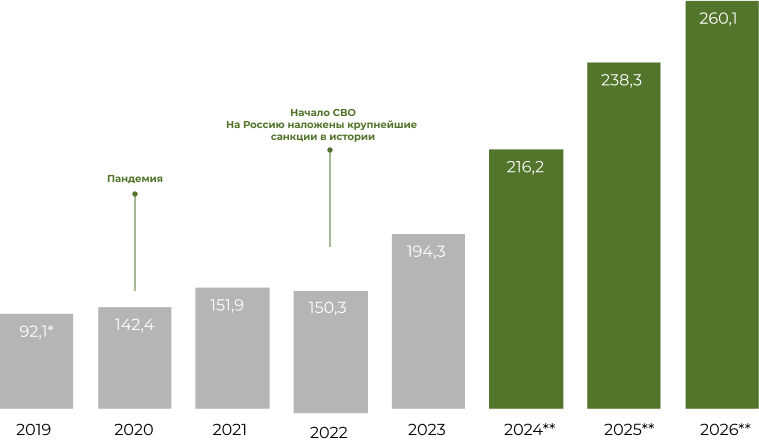 216,2 млрд. руб - прогноз емкости рынка в 2024 г.