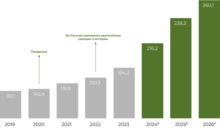 За 2020- 2023 гг. рынок доставки вырос на 36%